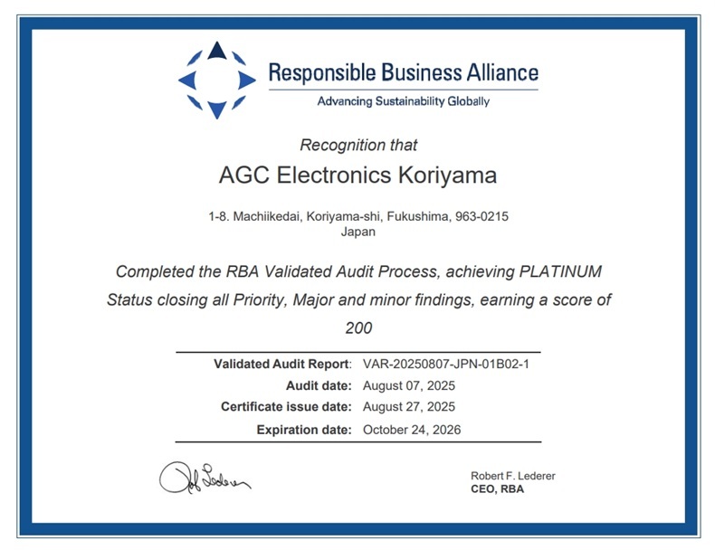 AGCエレクトロニクス株式会社(本社:福島県郡山市、社長:橋本 重人、以下AGEL)は、8月7日に監査を受審し、